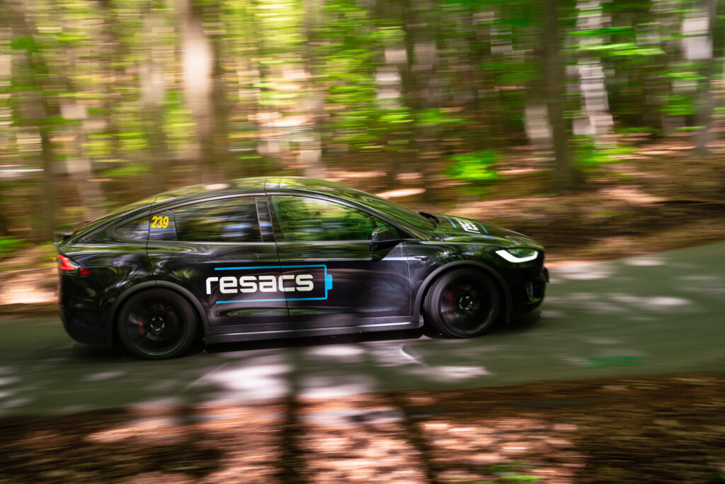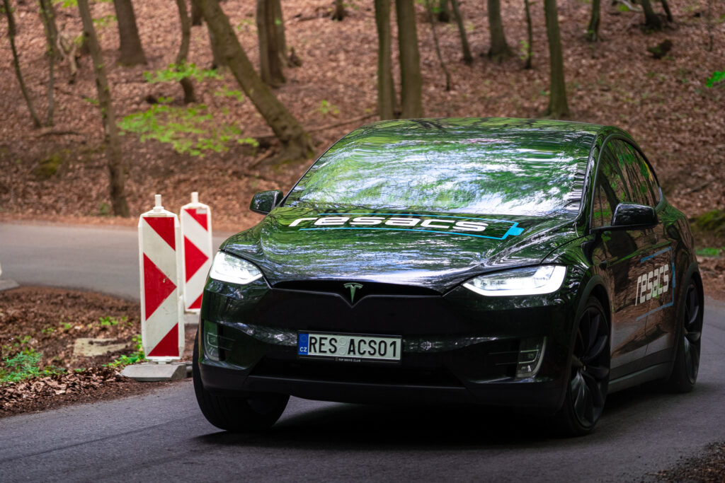 Protože má nadupaný vůz Tesla, o výkon nikdo strach neměl, větším oříškem bylo dobíjení. Jak si asi dokážete představit, v lese kousek od zříceniny hradu Cimburk dobíjecí stanici nenajdete. Naštěstí naši mechanici mysleli na všechno. Použili baterie Resacs, které se běžně instalují k fotovoltaickým elektrárnám, a vyrobili z nich mobilní nabíječku. Z té potom dobíjeli Zámečníkovu Teslu.
