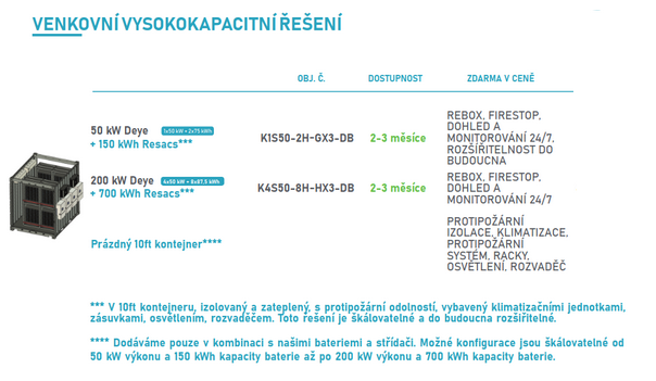 Pokud vám nestačí kapacita výše uvedených bateriových úložišť, máme k dispozici kontejnerová úložiště na míru.